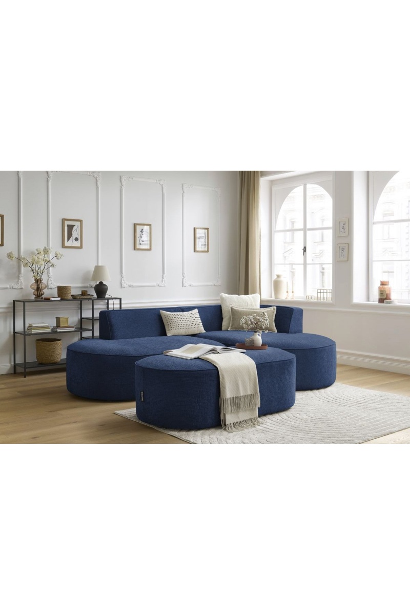Canapé d'angle droit et pouf Rousseau - Bleu foncé