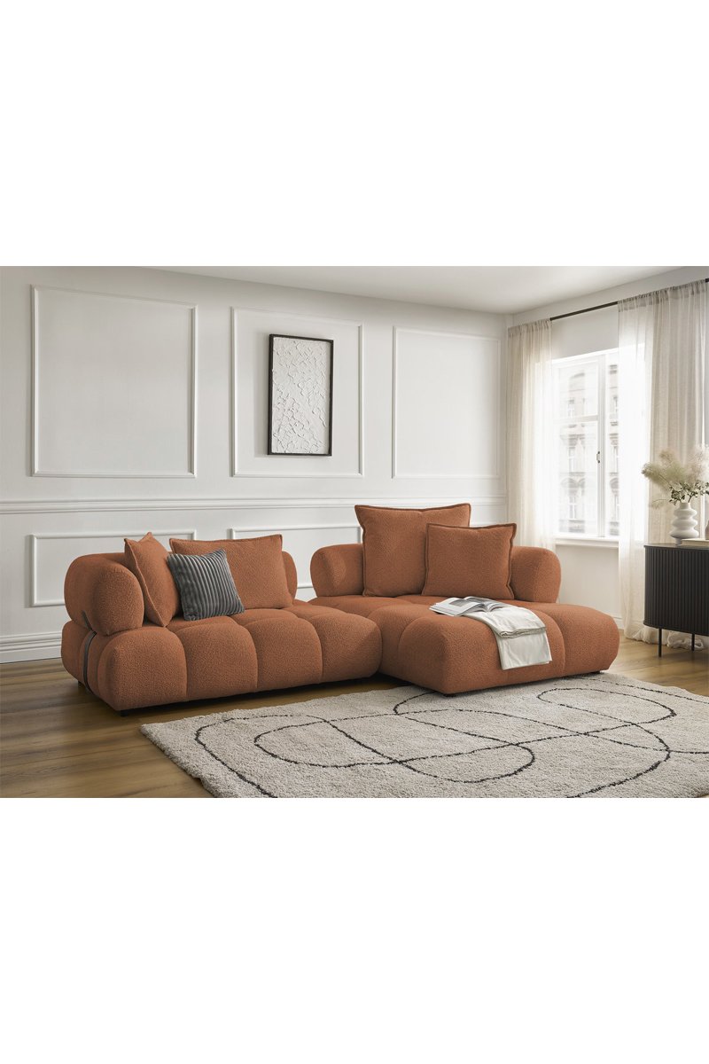 Canapé d’angle droite Alya - Orange - 4 places - En tissu bouclette