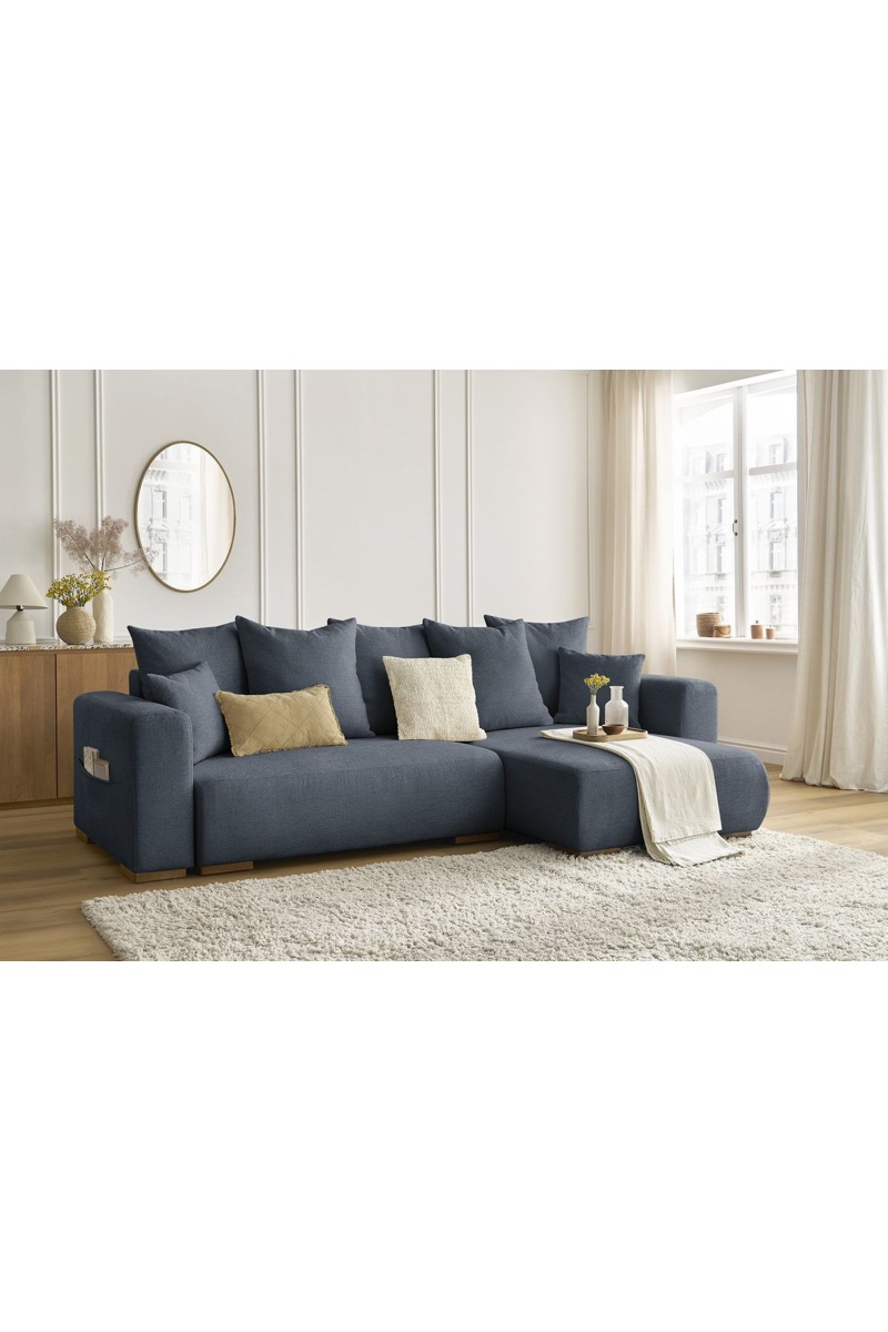 Canapé d'angle réversible convertible Sidonie - Bleu foncé - Couchage 231 x 133 cm