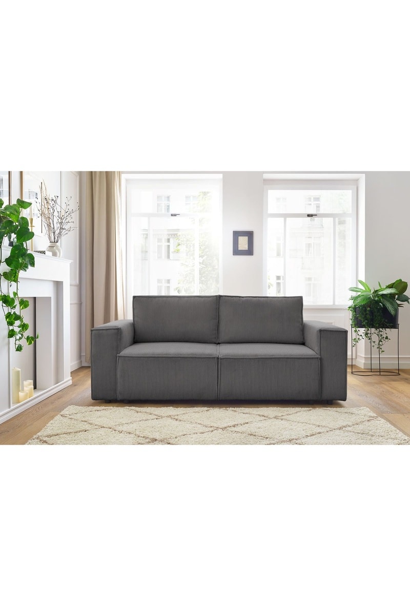 Canapé Nihad - Gris foncé - 2 places - En tissu velours