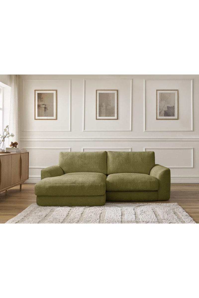 Canapé d'angle gauche Leonore - Vert olive - 3 places - En tissu texturé
