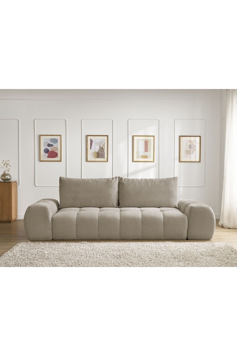 Canapé convertible Everest - Beige - 3 places - En tissu velours texturé