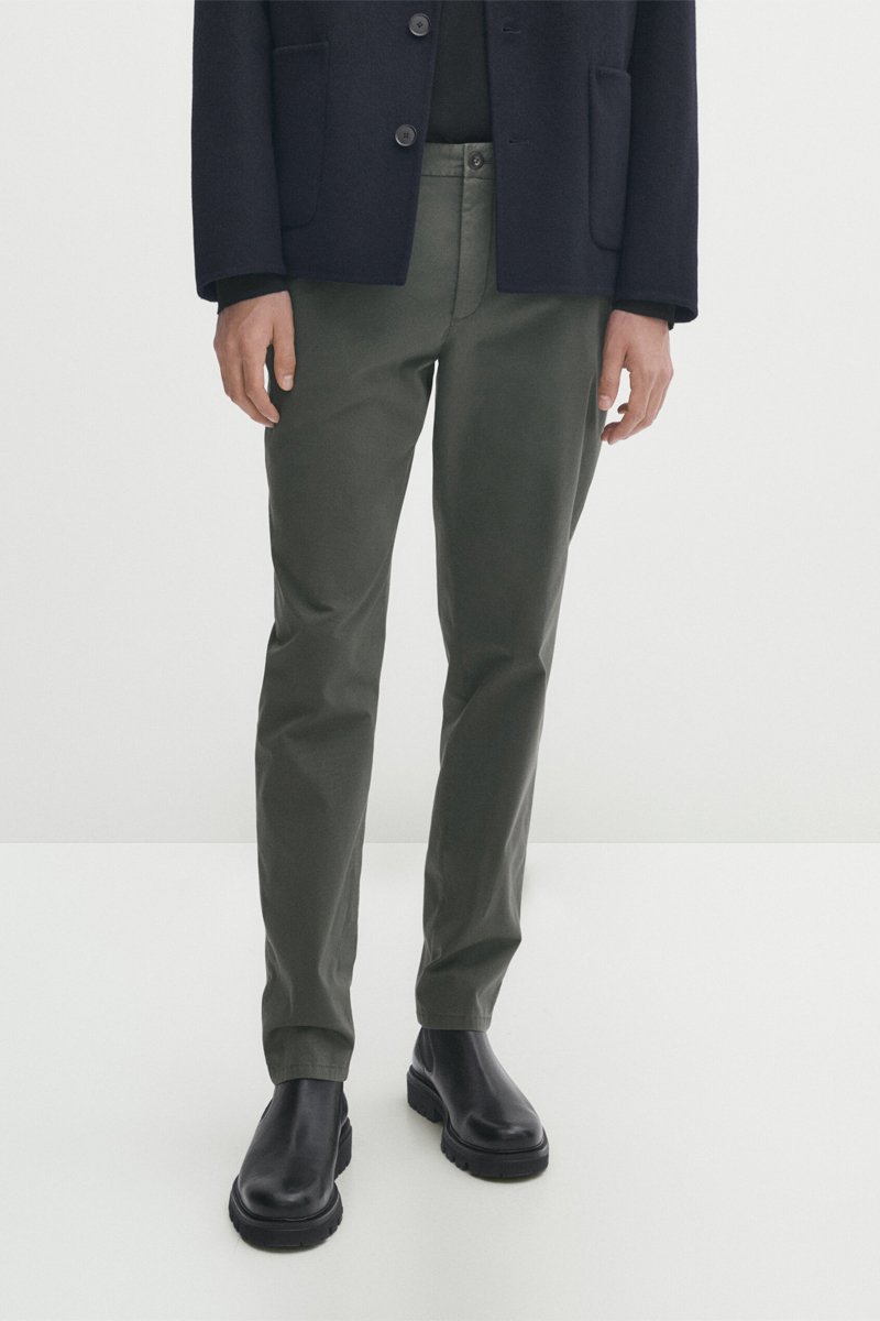 Pantalon chino texturé ottoman coupe slim - Kaki