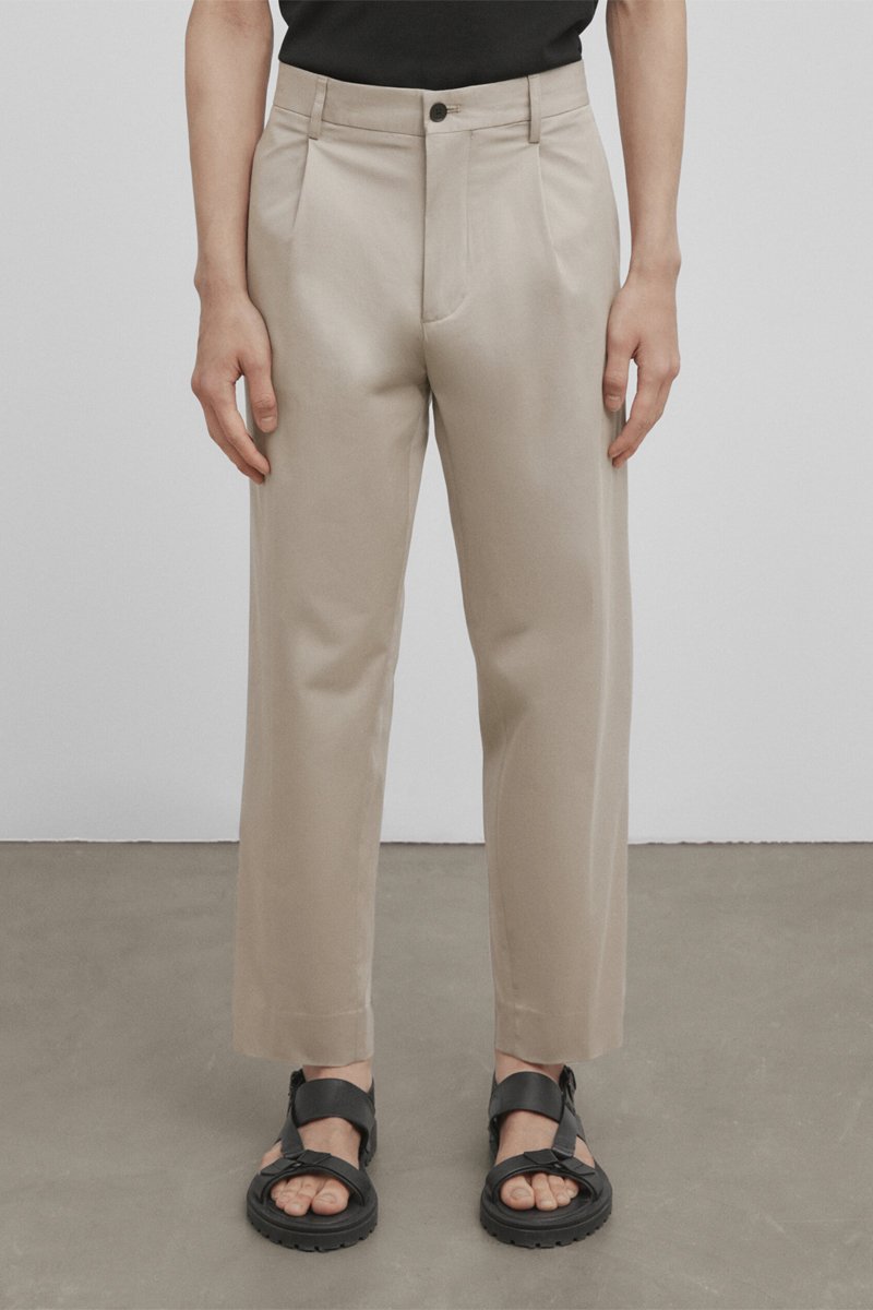 Pantalon à pinces en fibre de coton mélangé. Sa coupe ample en fait un vêtement confortable et idéal pour toutes les occasions.