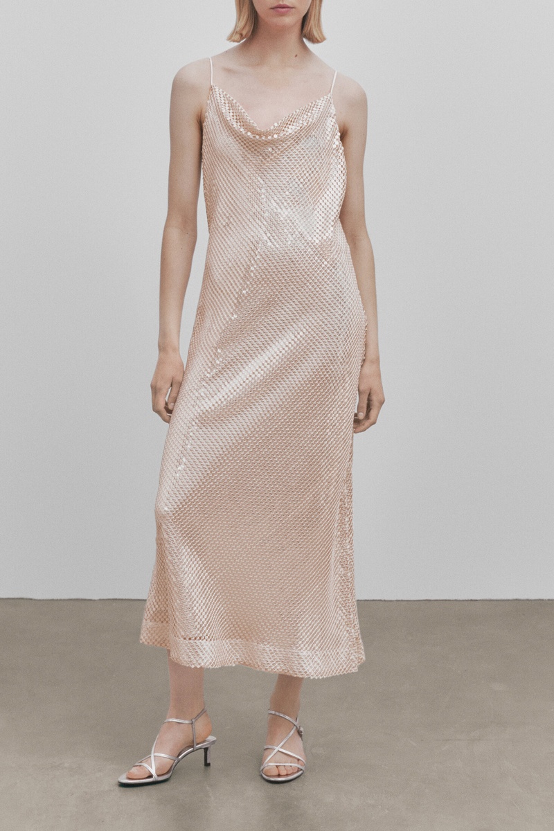 Un vêtement qui évoque l’élégance et le glamour à son plus haut niveau. Cette robe à bretelles fines et sequins crée à la fois une sensation de délicatesse et de subtilité frappant d’éblouissement et de sophistication.