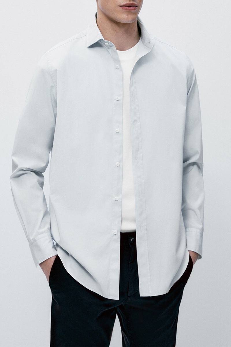 Chemise en popeline pur coton - Gris clair