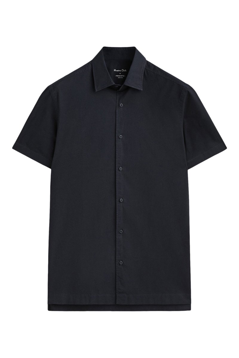 Chemise en sergé de coton à manches courtes - Bleu marine