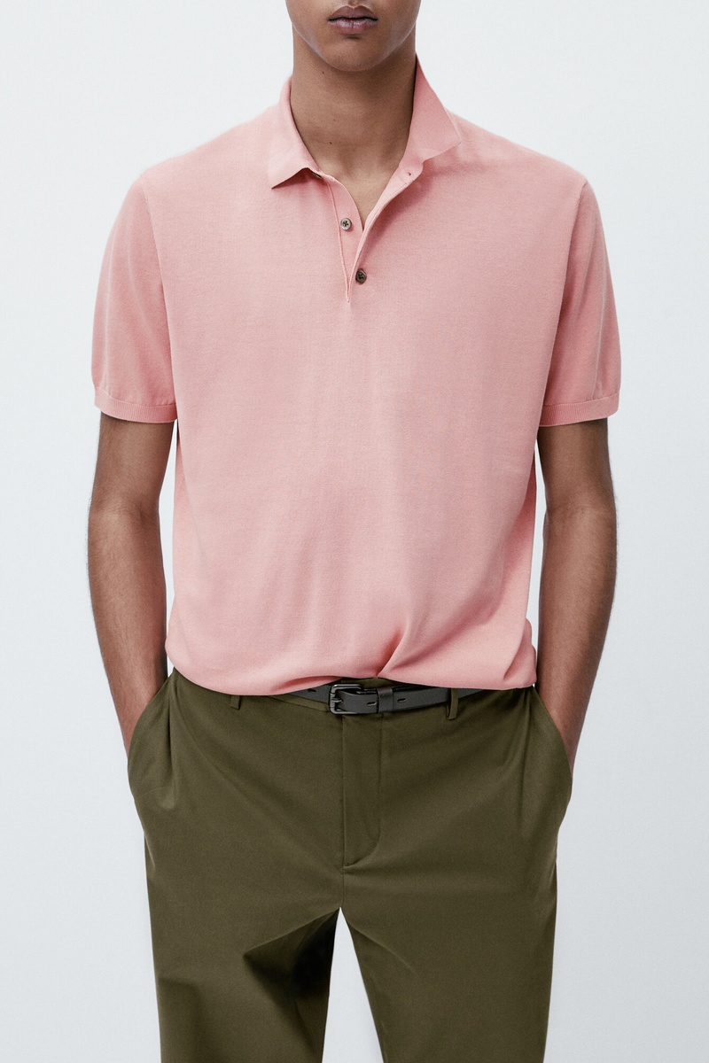 Pull polo manches courtes en coton - Rose