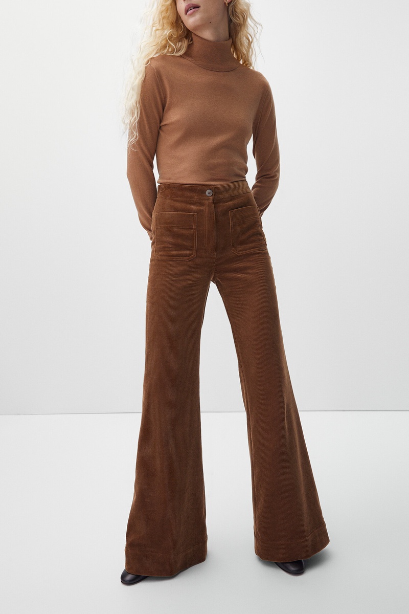 Pantalon wide leg en velours côtelé avec poches - Camel