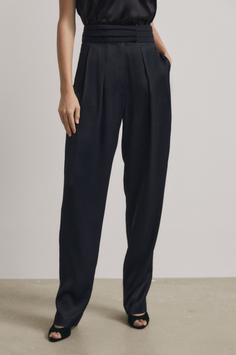 Pantalon tissu contrastant taille haute - Studio - Noir
