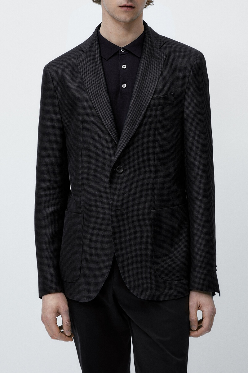 Veste pied-de-poule avec du lin et de la laine - Noir