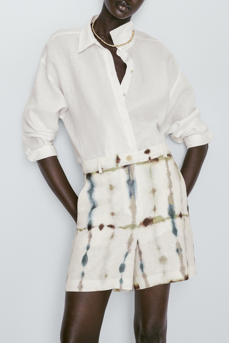 Bermuda en lin et coton tie-dye - Ecru et beige