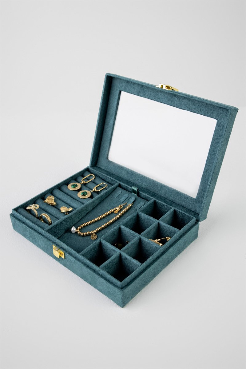Boîte à bijoux en velours - Bleu pétrole - Walter Bach