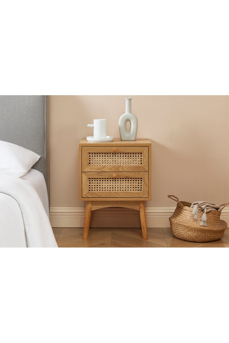 2 tiroirs habillés de cannage en rotin.