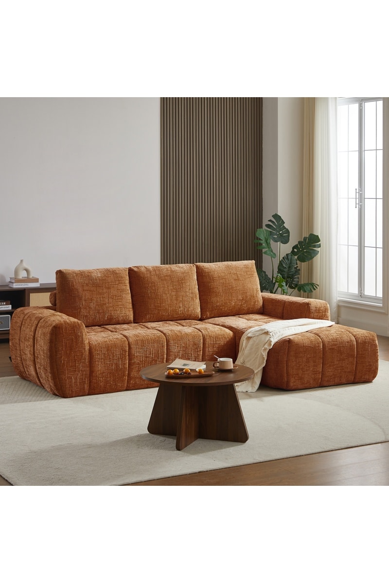 Canapé d'angle droit Aurea - Terracotta 4 places - Revêtement en tissu