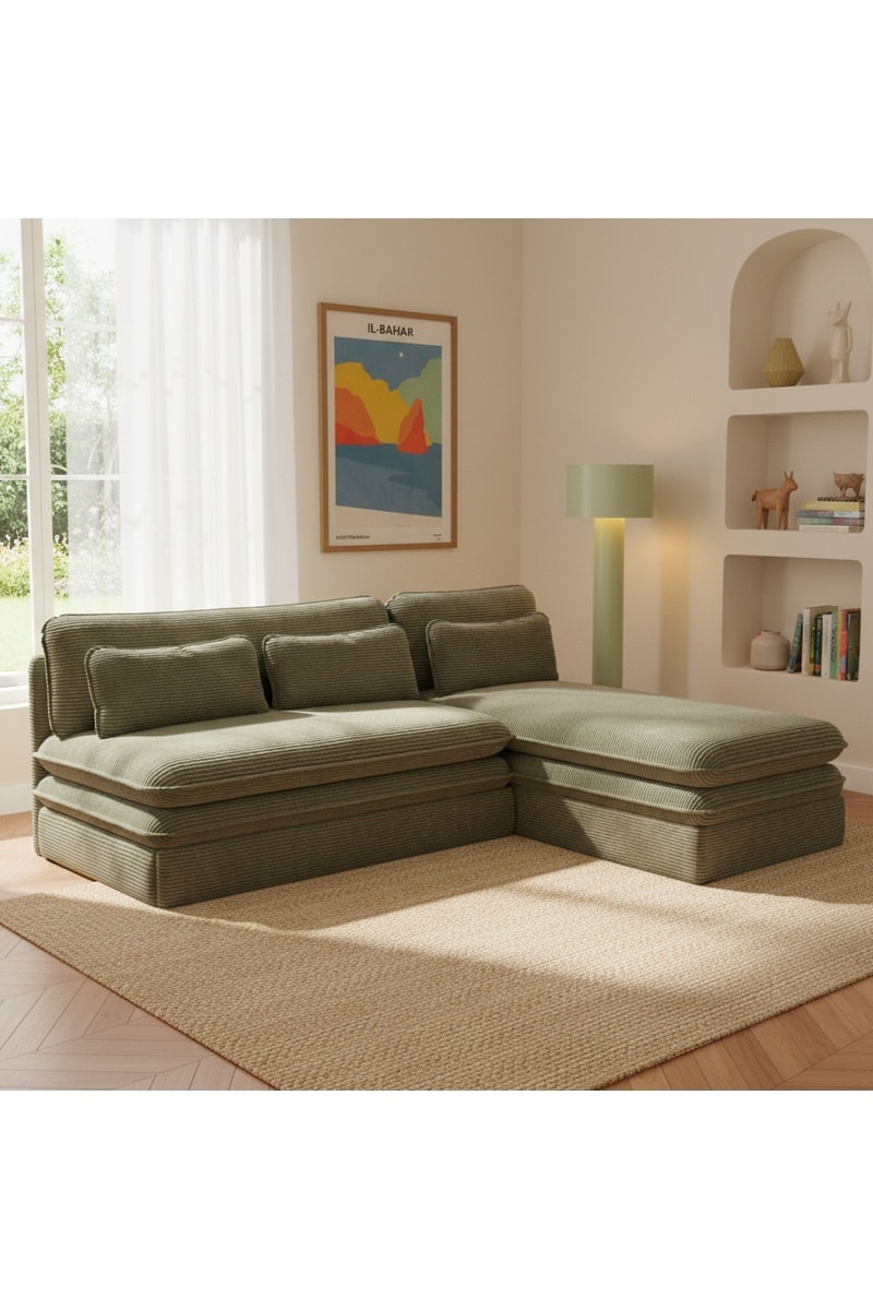 Banquette d'angle Noma - Kaki - 4 places - Revêtement en velours côtelé