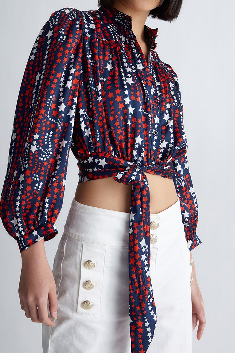 Chemisier noué à manches longues boutonnées.
