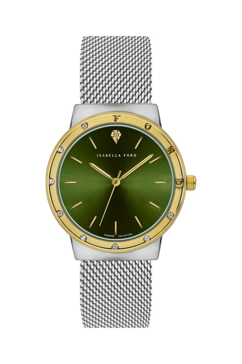 Montre à quartz en acier et diamant Olympe