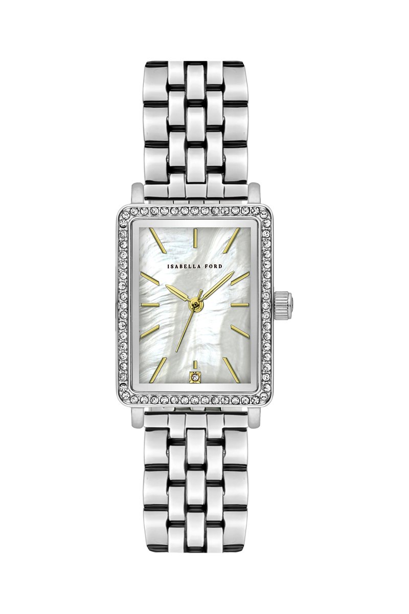 Montre à quartz en acier, nacre et diamant Agathe