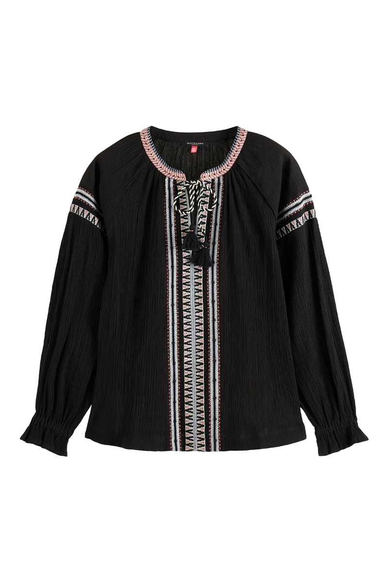 Motifs fantaisie à l'encolure, sur les manches et devant.