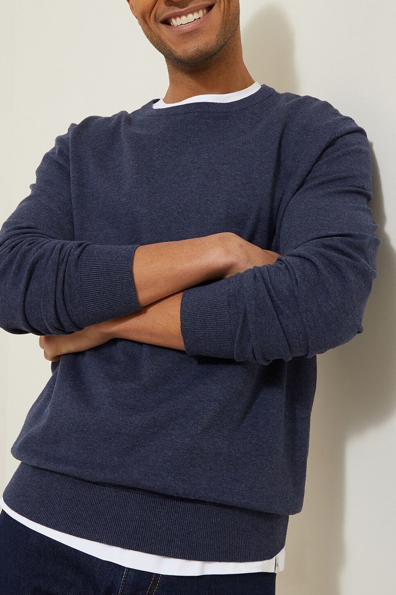 Ce pull, en polyester recyclé et coton mélangés, est votre meilleur allié pour les tenues quotidiennes.
