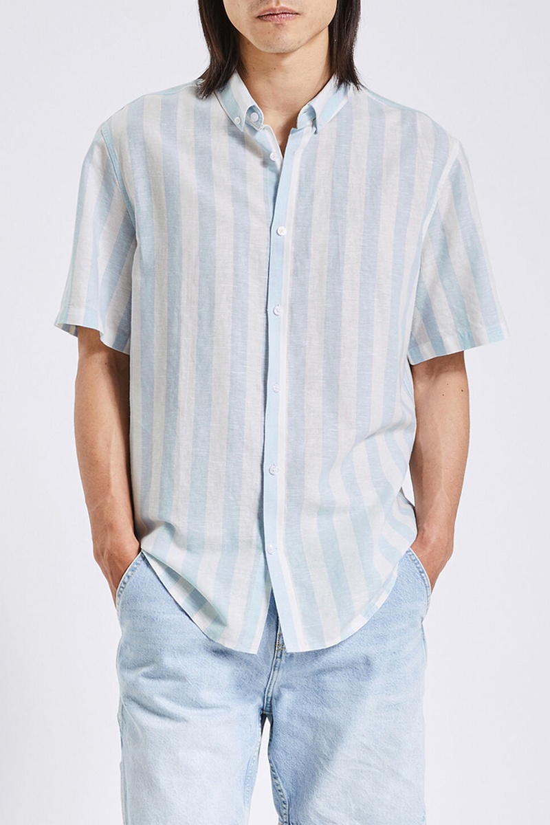 Chemisette regular en lin - Blanc et bleu clair