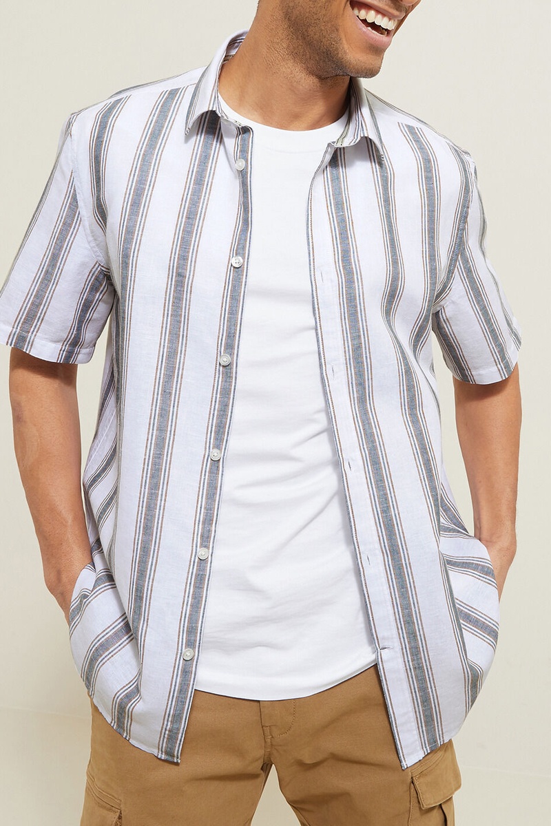 Légère et douce, cette chemisette regular à rayures, en coton lin thermorégulant, est un véritable atout pour l'été ! Coupe regular, ni trop ajustée ni trop large avec un tombé droit.