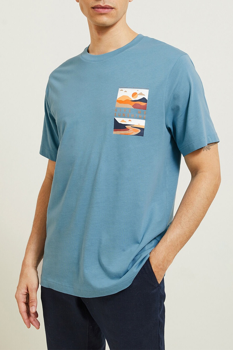 Idéal pour un style casual et décontracté, ce t-shirt imprimé paysage placé à la poitrine s'accorde parfaitement avec un jean ou un chino en toutes circonstances.