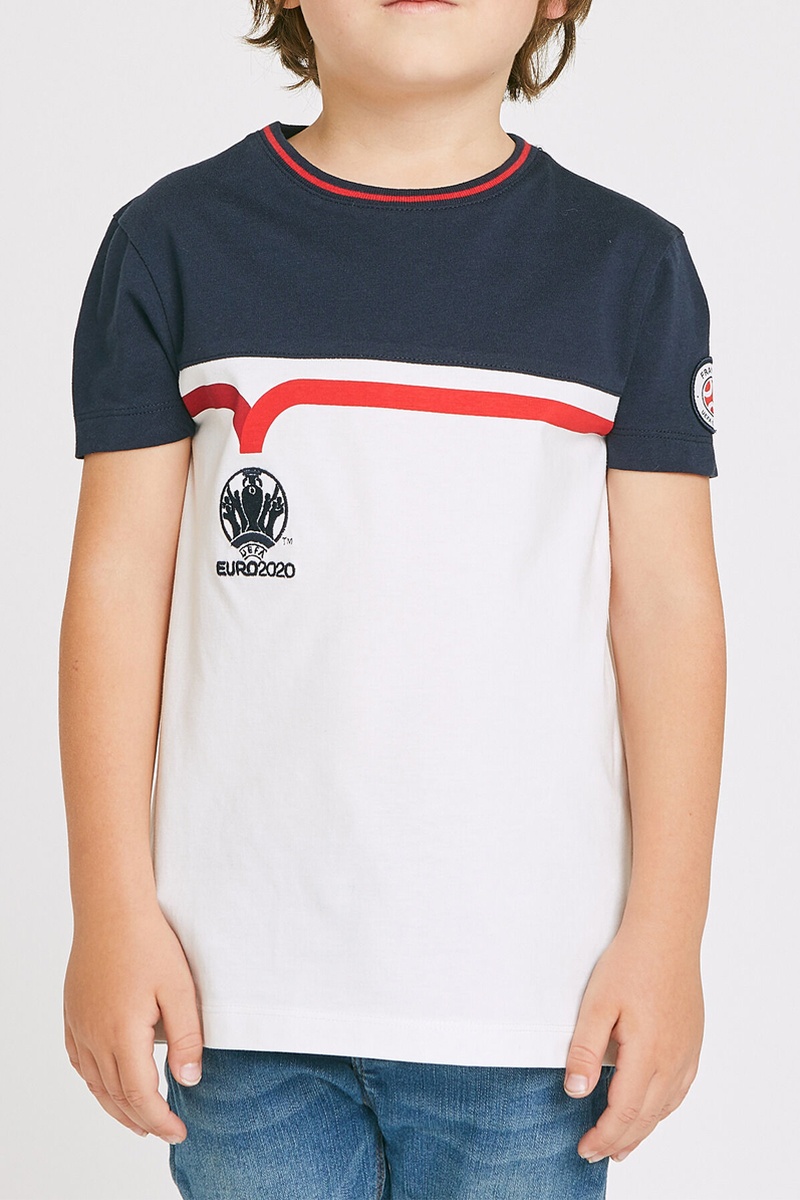A l'avant, vous trouverez un logo Euro 2020 avec des bandes colo block; dans le dos, un logo Euro 2020 imprimé et l'imprimé France.