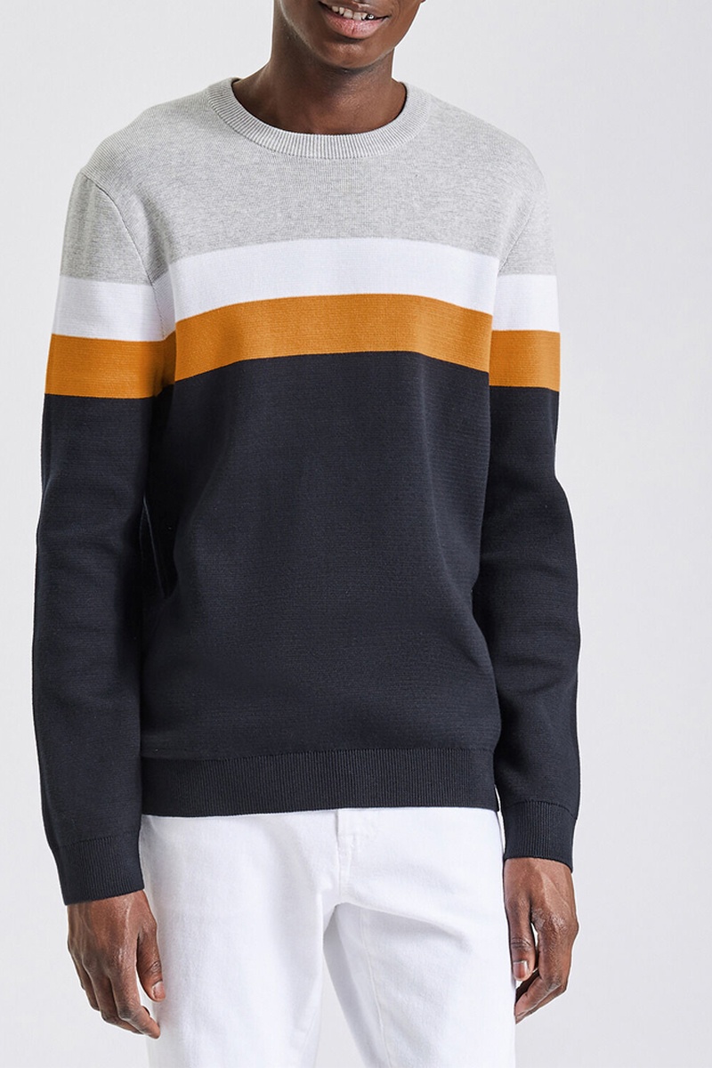 Coloris : gris clair chiné, bleu marine moutarde et blanc