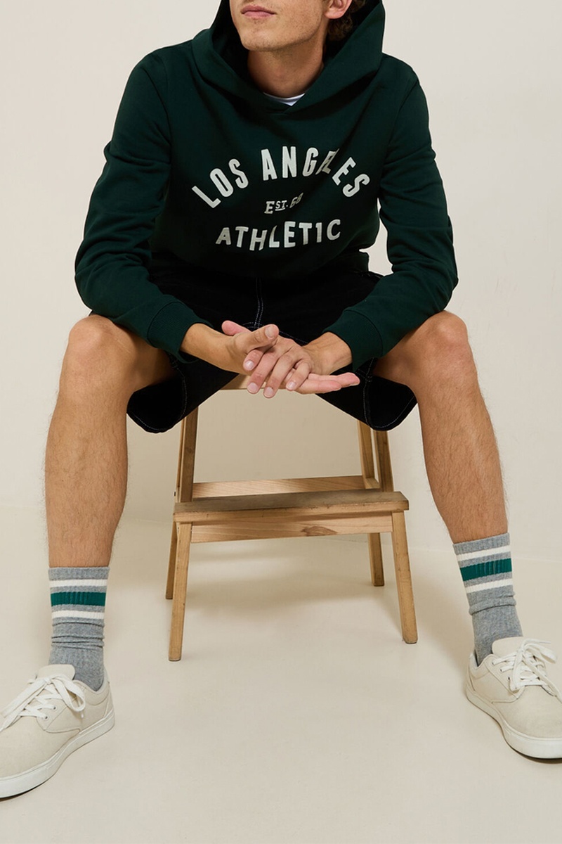Affiche ton style sportswear avec ce sweat à capuche affichant un imprimé "Los Angeles Athletic Est. 68" sur le devant. Idéal pour un look décontracté et tendance.
