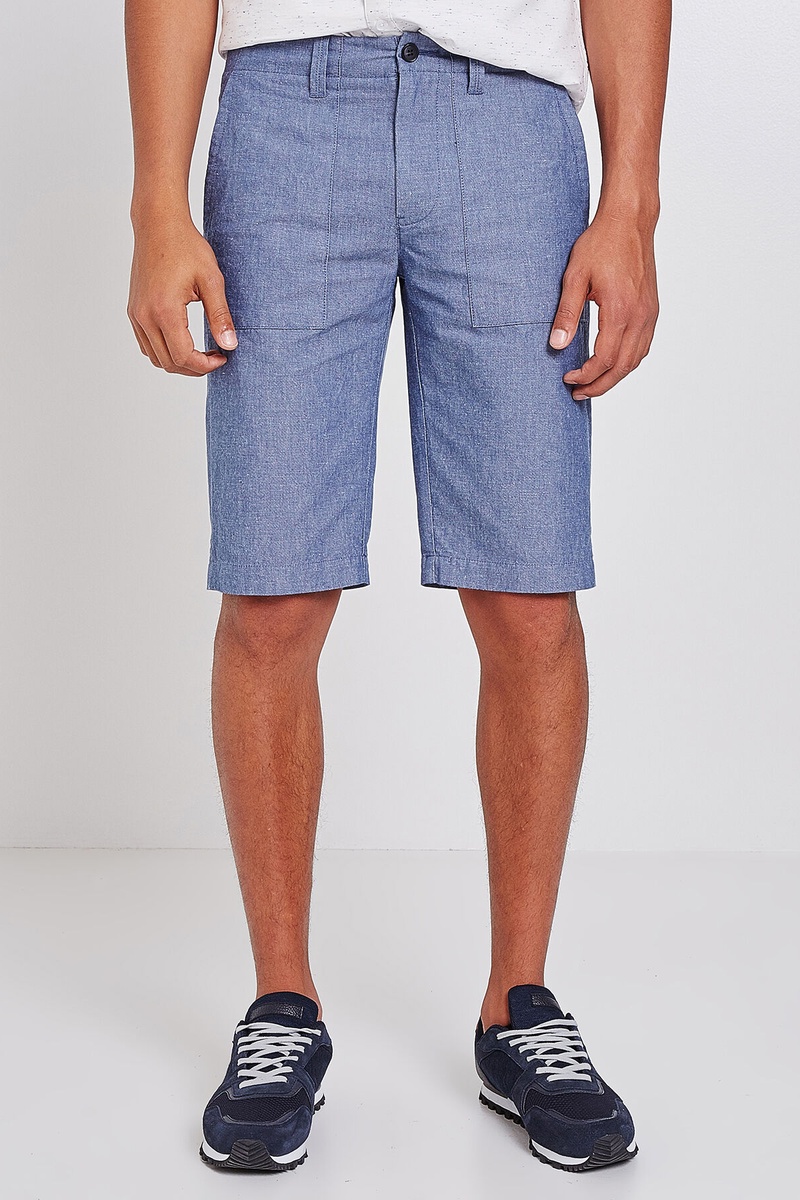 Bermuda chino Chambray en coton/lin avec poches platriers