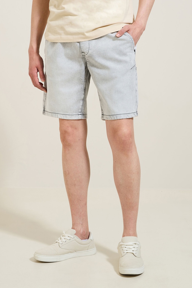 Pour un style décontracté et durable, optez pour ce bermuda en jean effet maille ! Taille élastiquée avec cordon de serrage.