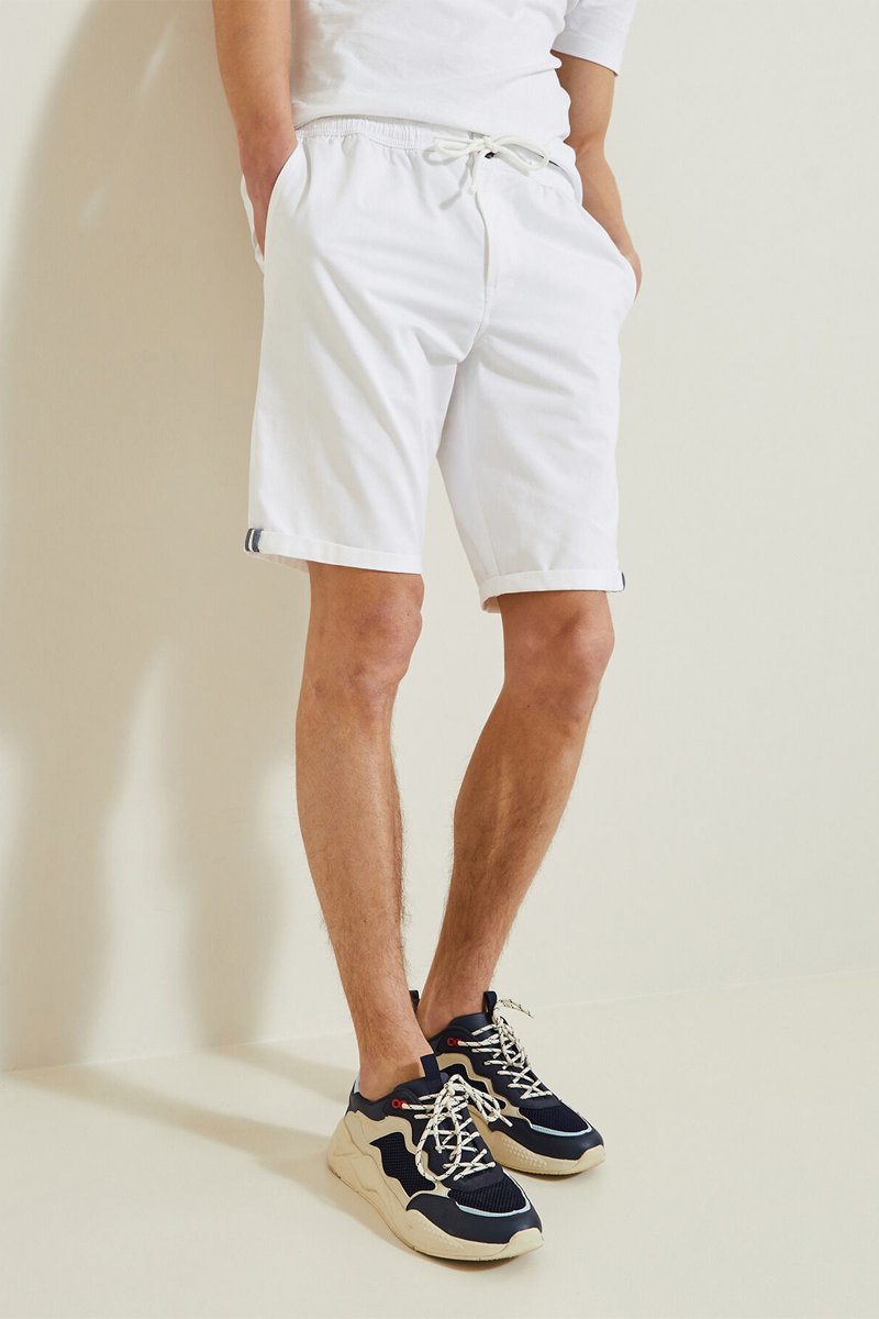 Ce bermuda chino, indispensable de l'été, se porte avec ce que vous voulez ! Tee-shirt, chemise ou polo, choisissez votre style ! Taille élastiquée avec cordon de serrage.