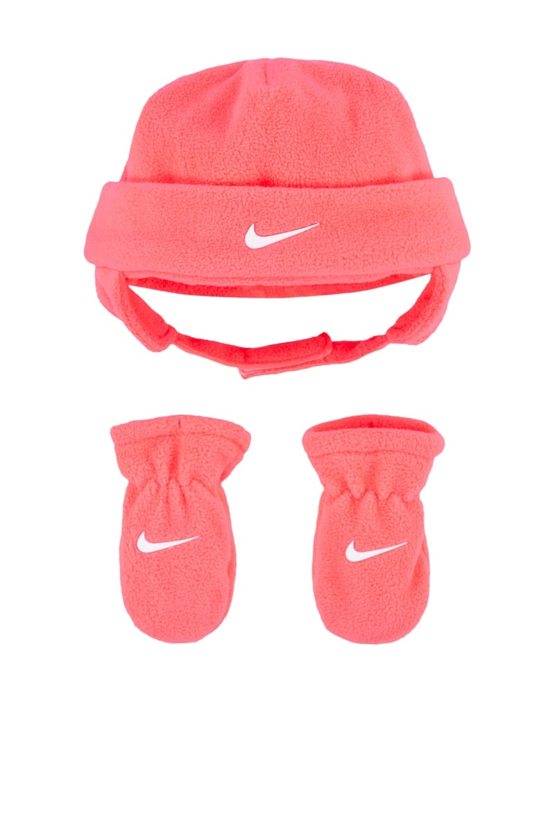 Bonnet et moufles polaires - Rose poudré