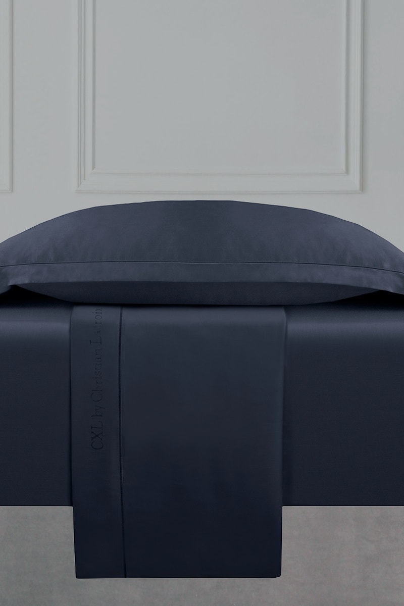 Parure de draps en satin de coton 80 fils/cm² Uni 1 baratta - Bleu marine