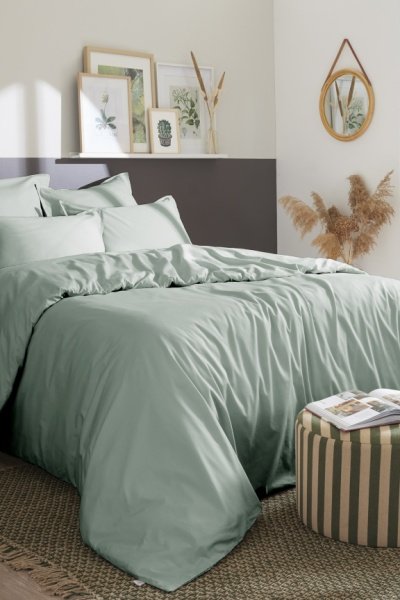 Housse de couette en percale de coton 80 fils/cm² Bally - Céladon