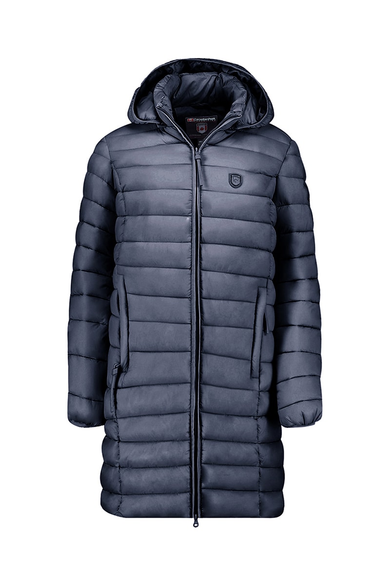 Doudoune longue à capuche.