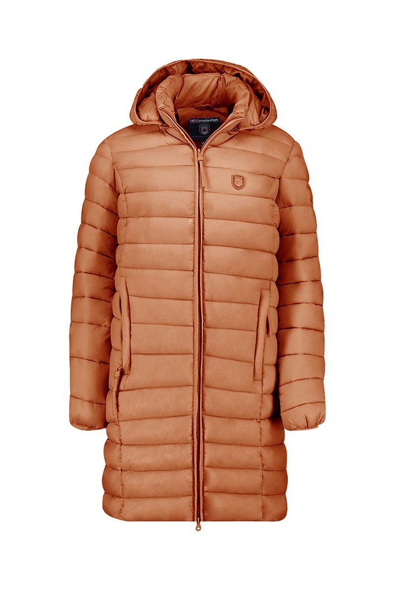 Doudoune longue à capuche.