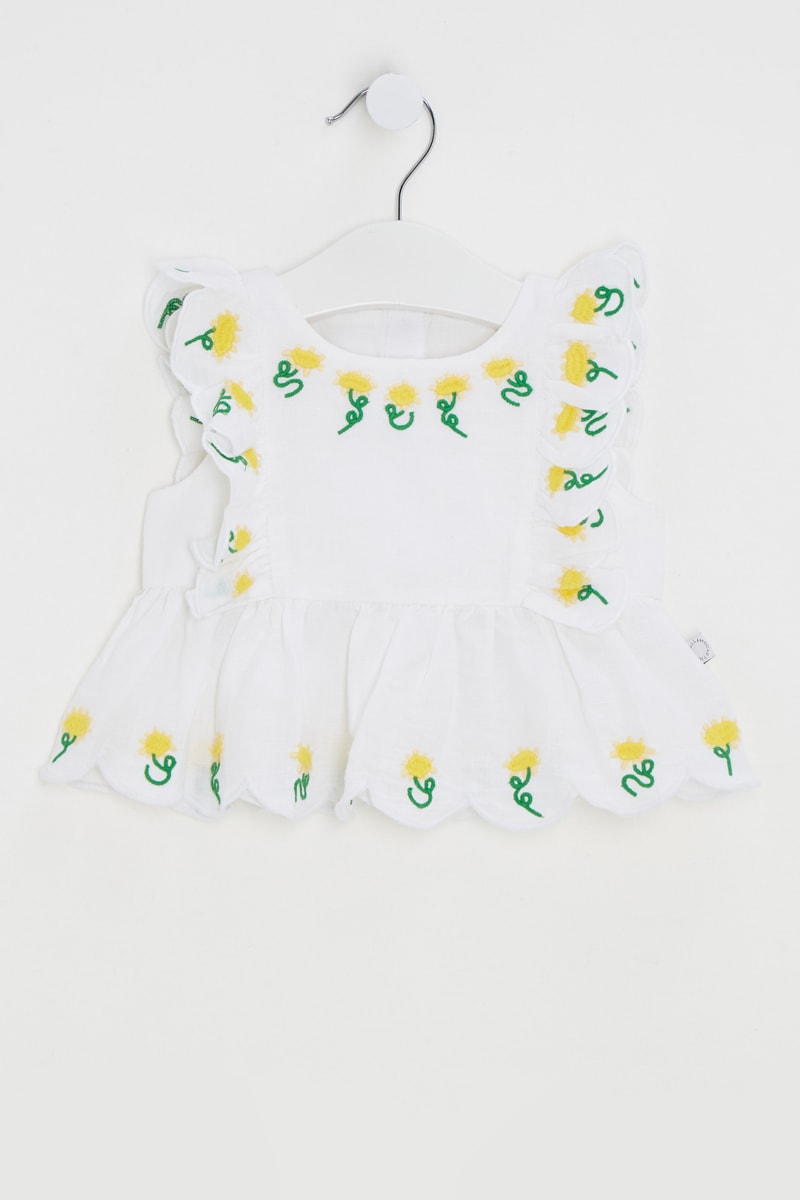 Motifs fleurs brodés devant, au dos et à la base.