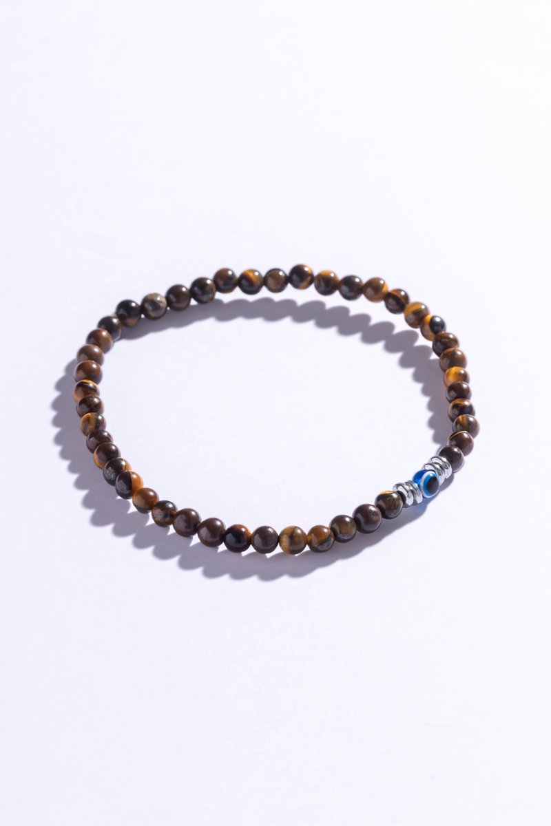 Bracelet serti d'œils-de-tigre et d'une perle de verre.