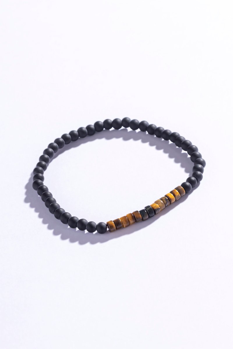 Bracelet serti d'œils-de-tigre et de perles d'imitation.
