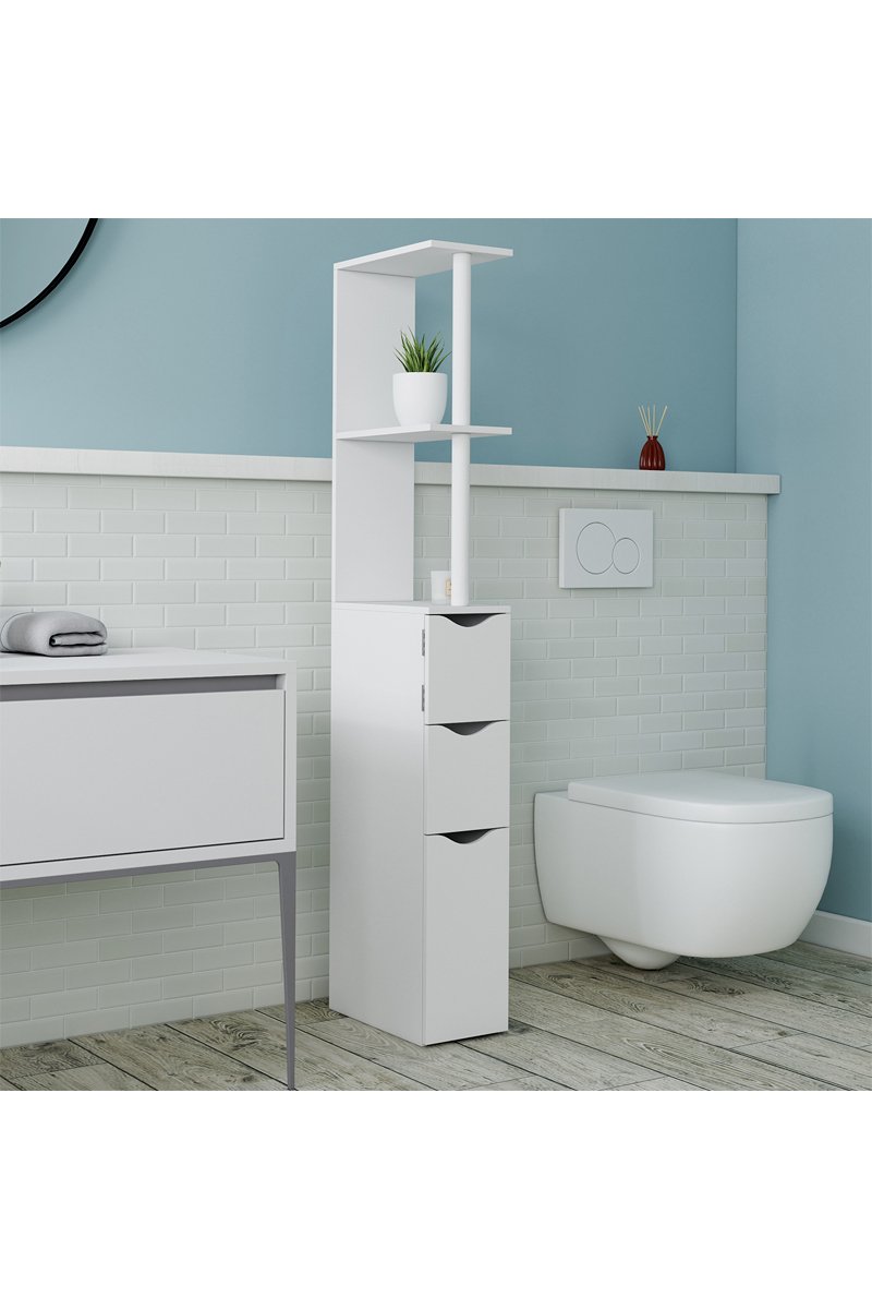 Colonne pour salle de bain blanche avec étagères + 3 portes blanches 136cm