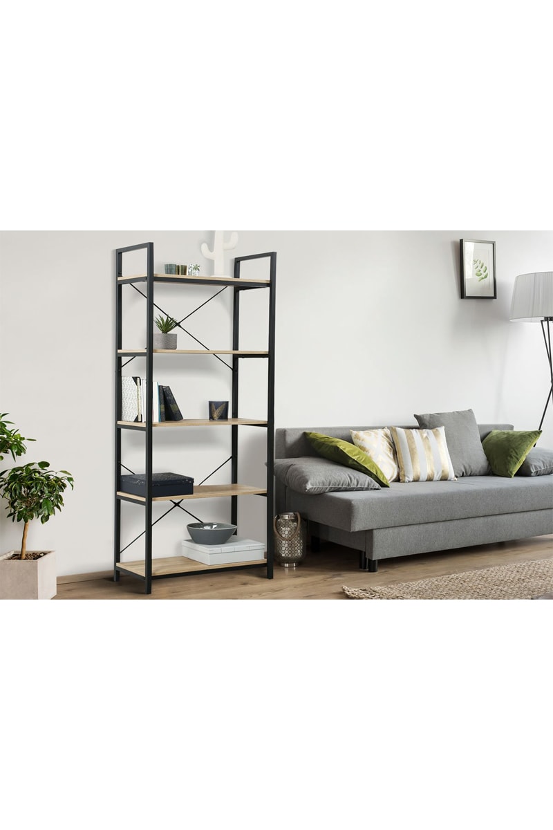 Bibliothèque Manufacture - Noir et imitation bois
