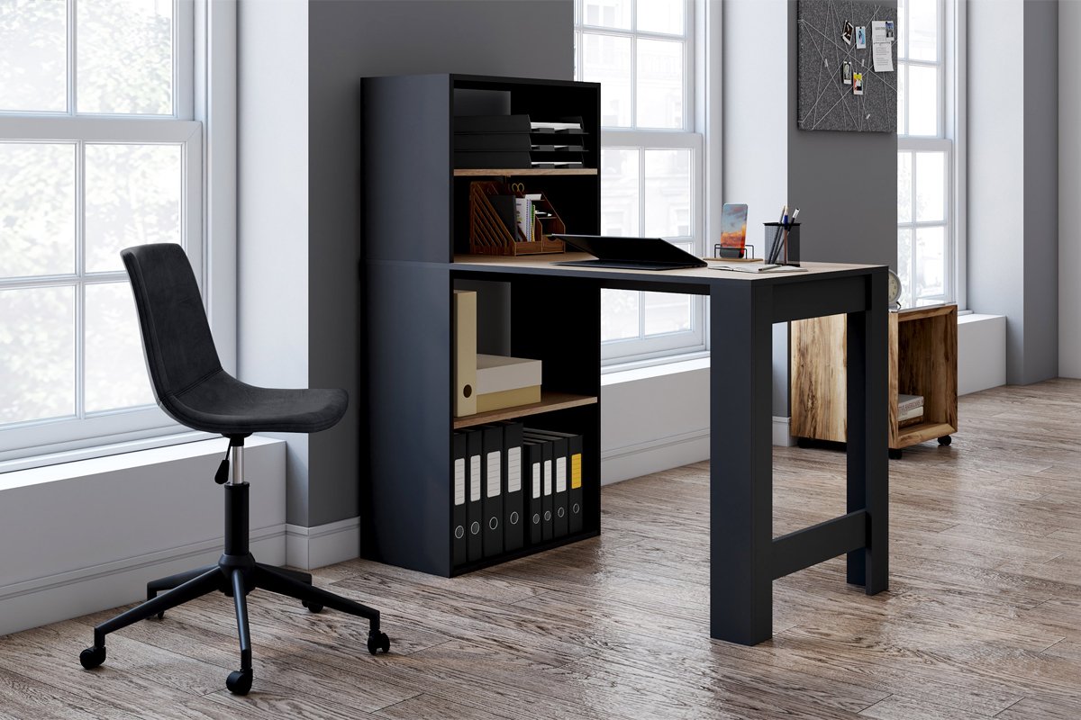 Bureau-bibliothèque 2-en-1 Benny - Imitation bois et noir