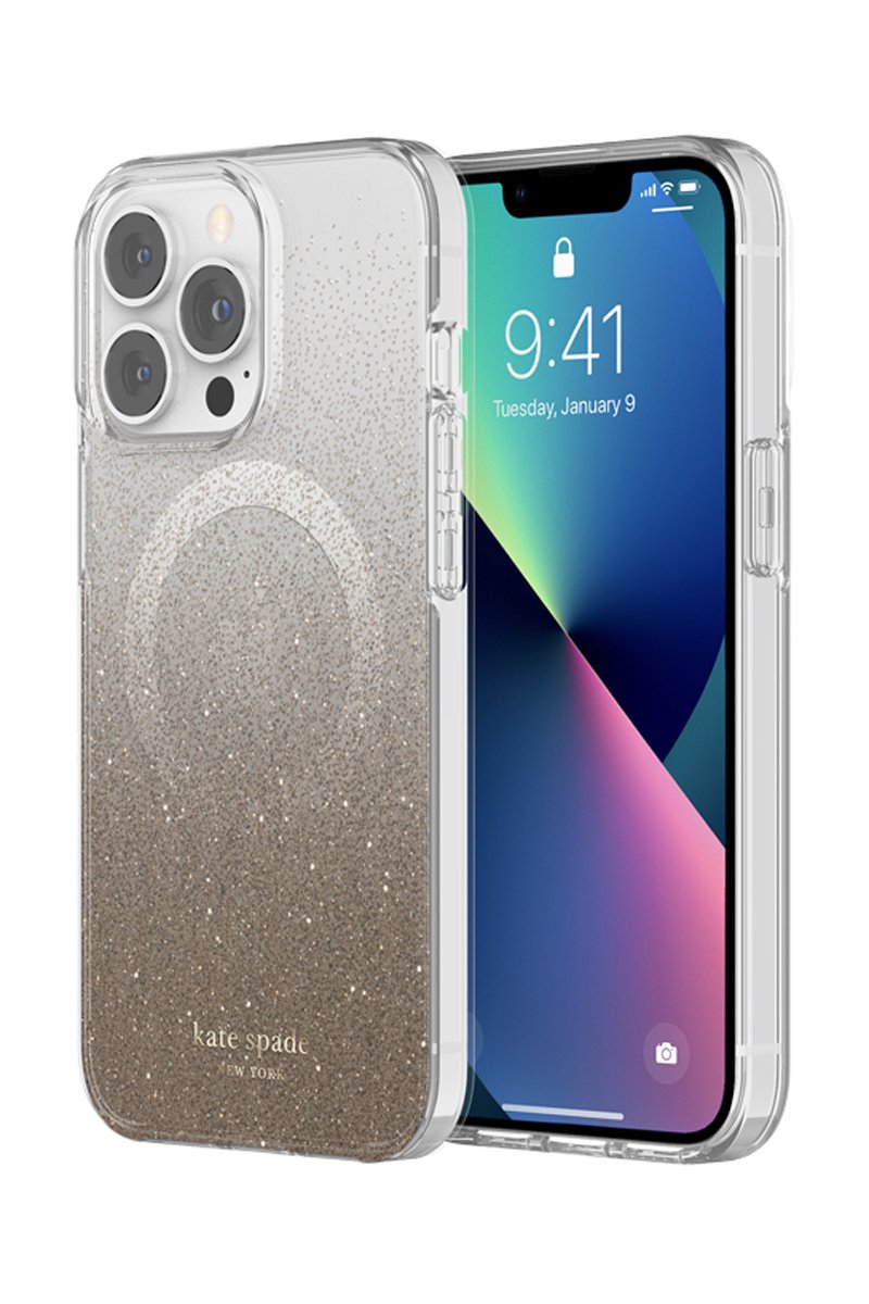 Décorez et protégez votre iPhone 13 Pro avec cette remarquable coque Champagne Glitter signée Kate Spade et compatible MagSafe !