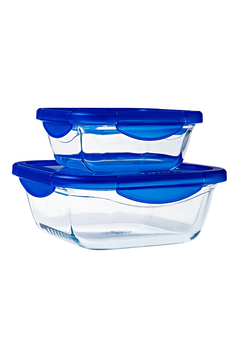 2 boîtes de conservation en verre borosilicate avec couvercles.