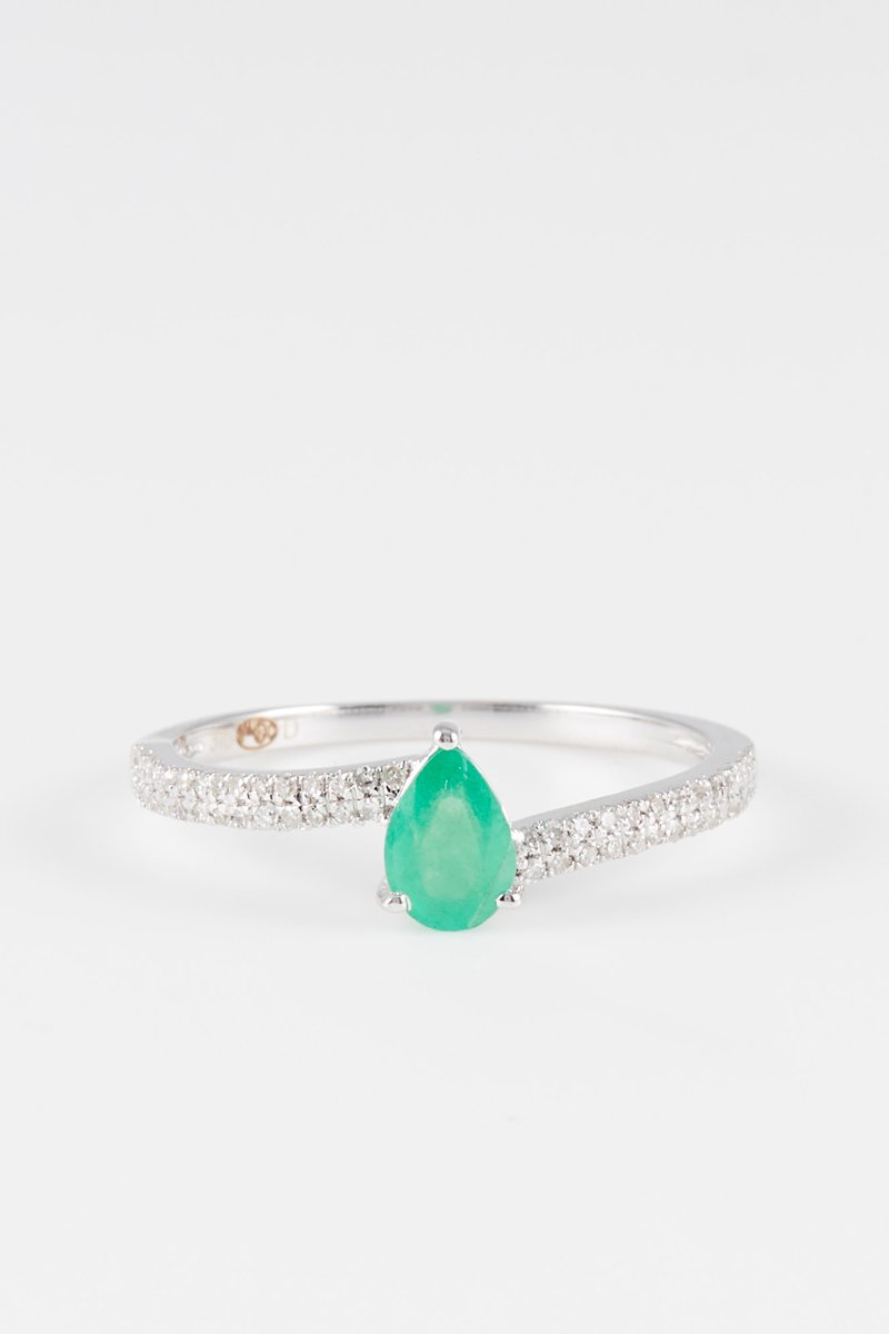 Matière : or blanc 375/1000, diamants 0,11 carat/57 et émeraude 0,41 carat/1