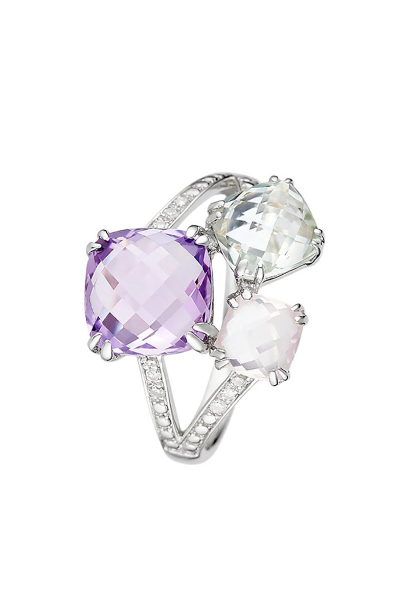 Bague Précieuses Divines - Or blanc, diamants, améthystes et quartz rose