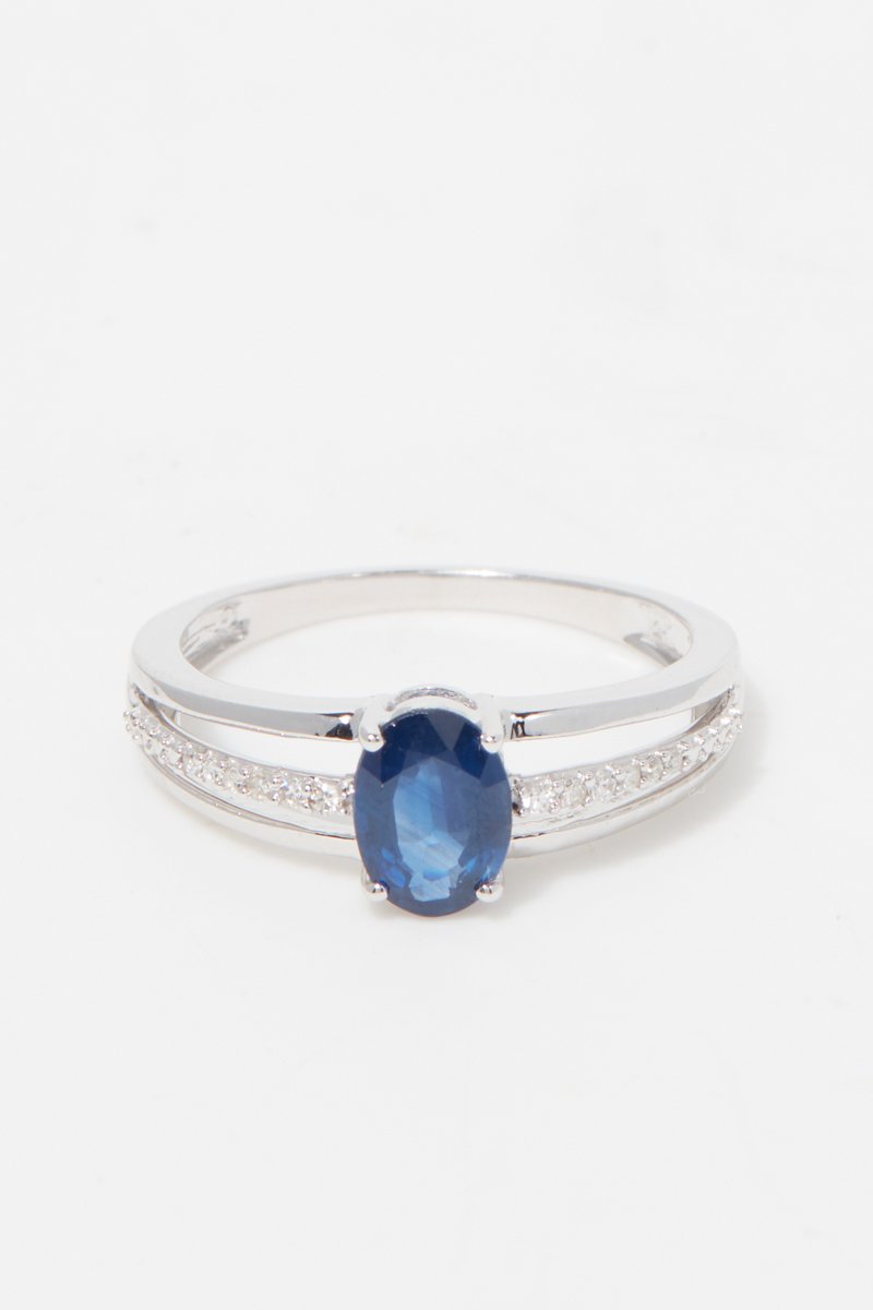 Bague Solitaire Tria - Or blanc, diamants et saphir